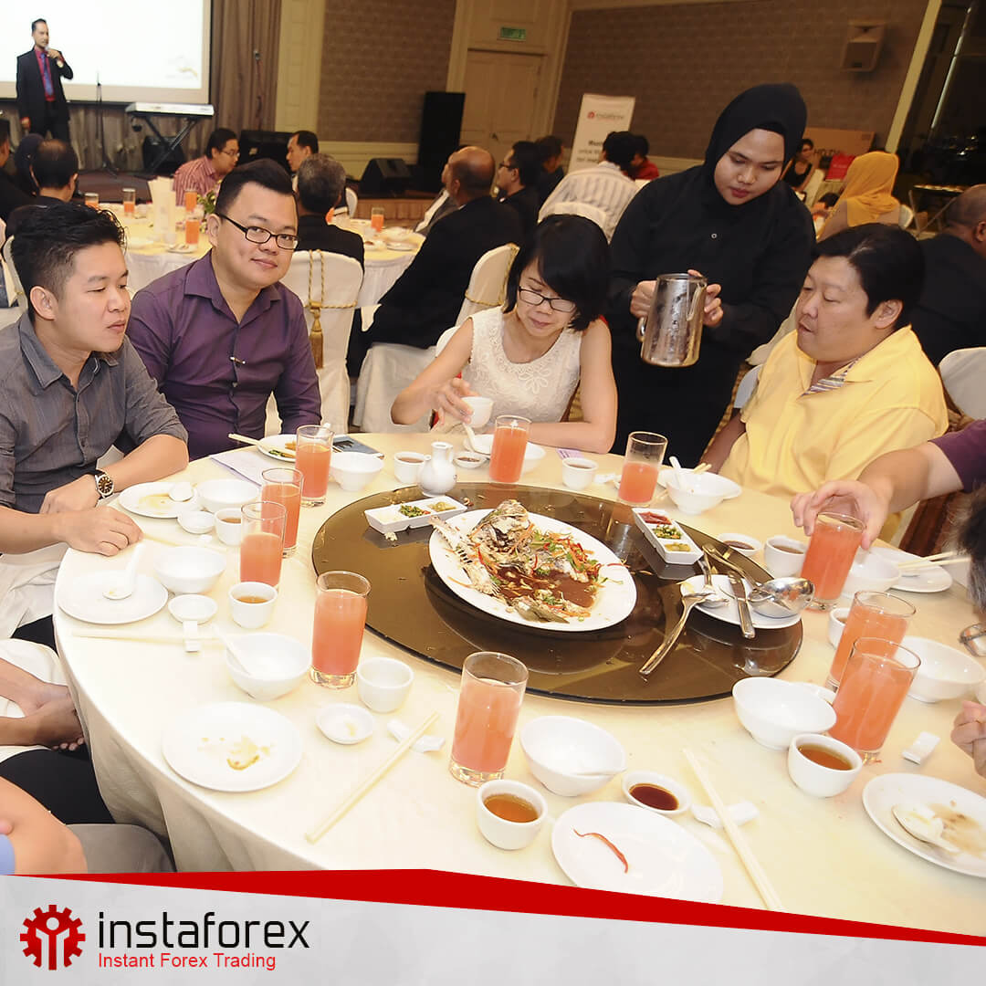 Pada hari kejadian tersebut, hampir seramai 100 pelanggan InstaForex berkumpul di Hotel mewah Eastern dan Oriental bagi membincangkan isu-isu perdagangan yang penting serta bergaul dengan indivdu yang berfikiran terbuka. Suasana yang begitu unik pada malam perjumpaan itu telah membangkitkan semangat kekitaan di kalangan semua tetamu.