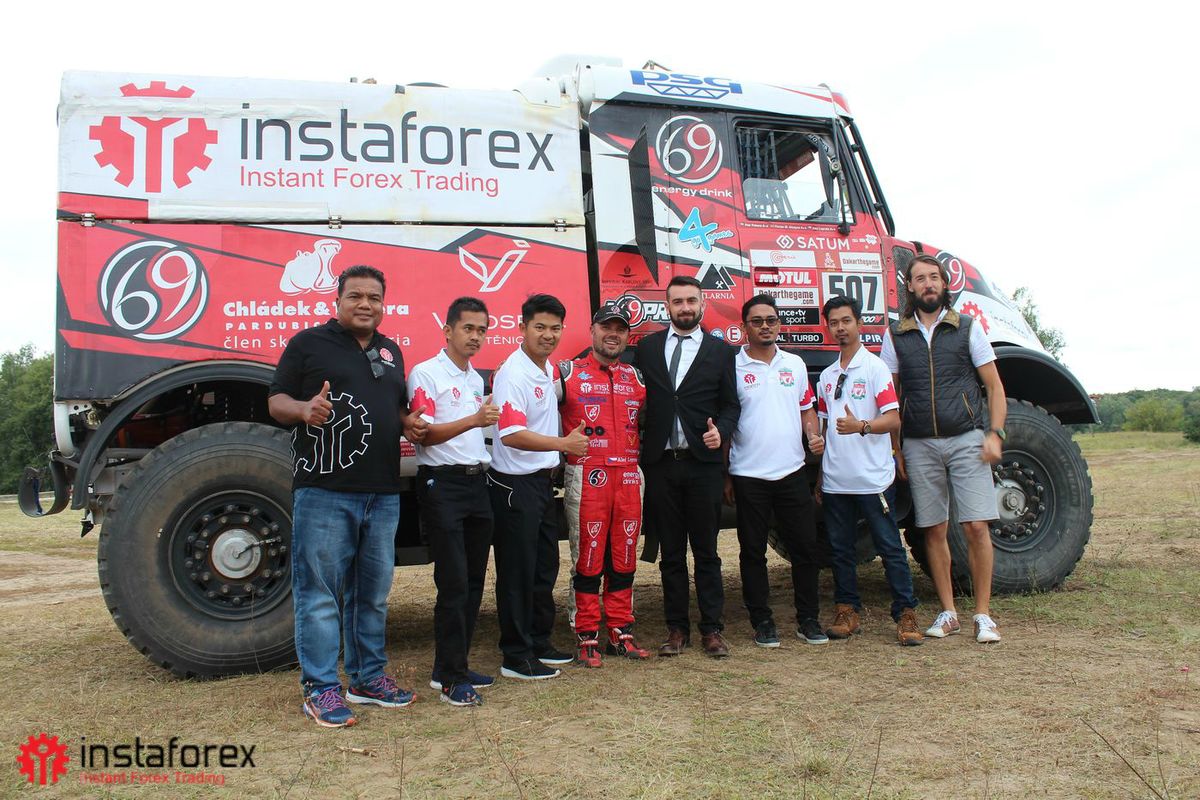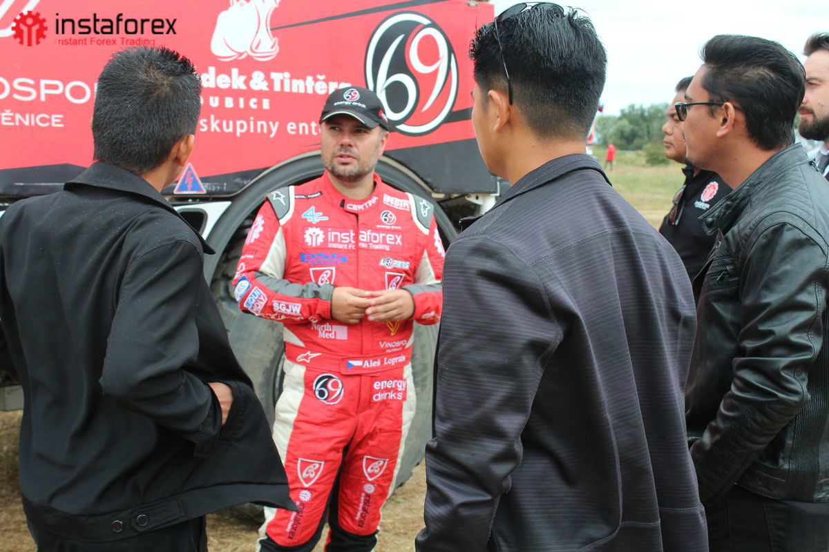 No segundo dia, nossos convidados encontraram os pilotos da InstaForex Loprais Team, a famosa equipe de corrida e um participante regular do Rally Dakar - a maratona transcontinental anual de rali realizada em diferentes partes do mundo. O líder da equipe e o principal piloto, Aleš Loprais, concordaram em mostrar o carro e responder às perguntas de nossos parceiros sobre a corrida. Ele também deu um passeio no caminhão de corrida com todos que queriam dirigir o mais próximo possível da corrida real. Não há palavras para descrever esses sentimentos fantásticos. É uma verdadeira emoção, mesmo que por algumas horas, se tornar um membro da equipe do Rally Dakar, saindo da estrada em velocidade ilimitada.